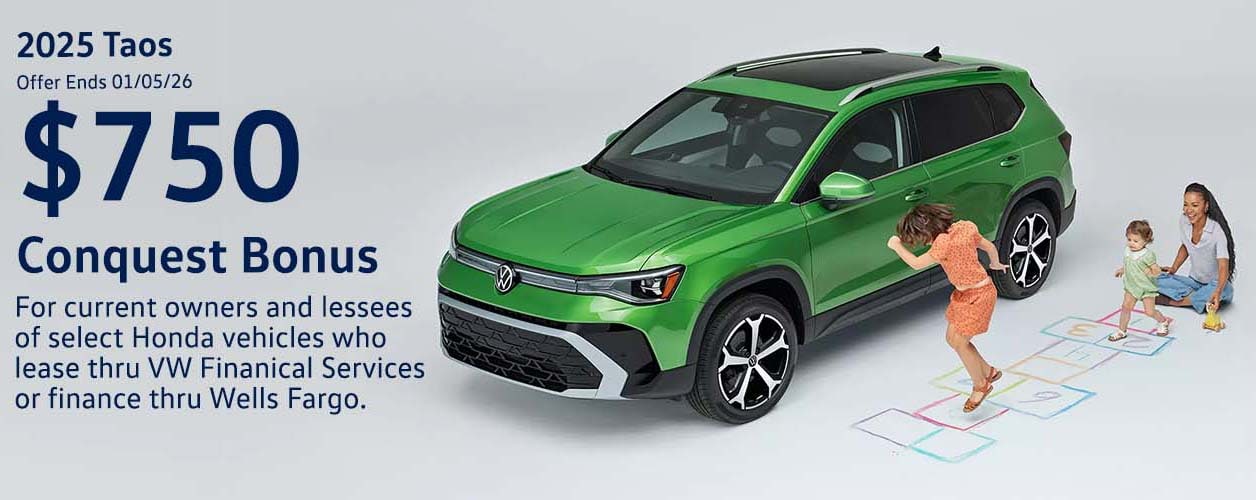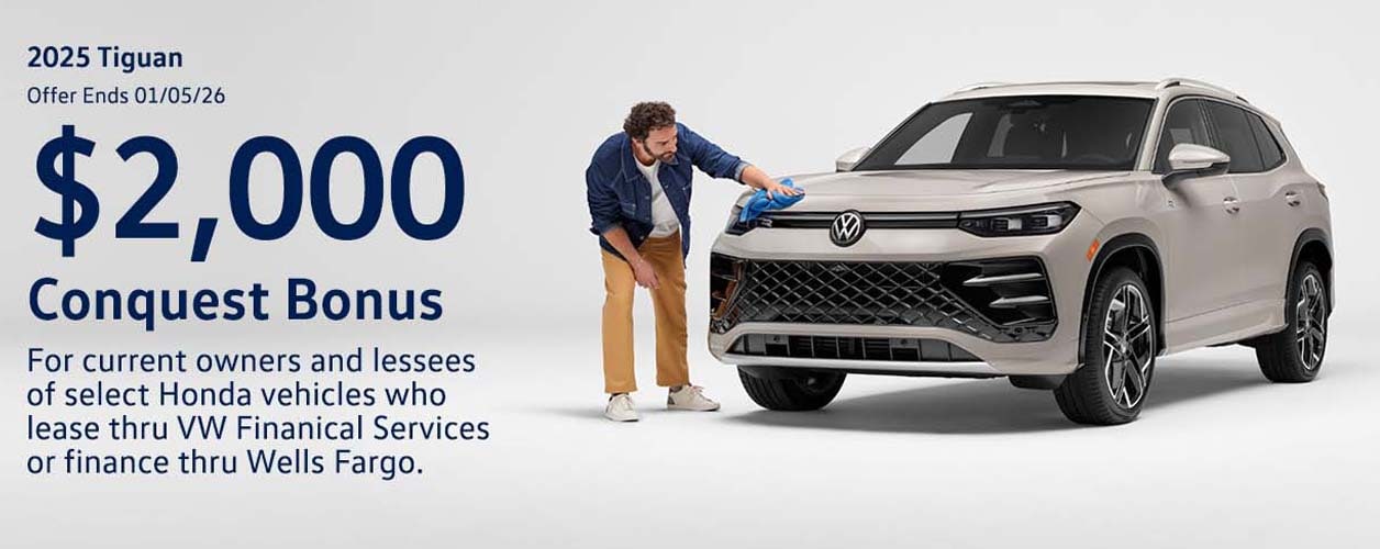 Volkswagen will pay a customer bonus towards the lease or purchase of select new and unused Volkswagens for current owners of any 2015 or newer Honda vehicle.