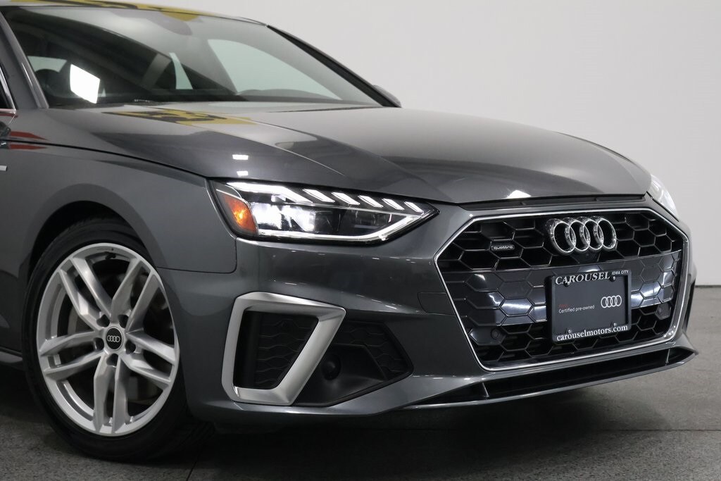 Daytona Gray Pearl Effect 2022 Audi A4 45 S line Premium Plus quattro Certified. Odometer is 1628 miles below market average! 2 Rear USB Charge Ports, Adaptive Cruise Control w/Traffic Jam Assist, Alarm System w/Motion Sensor, Audi Active Lane Assist, Audi Advanced Key, Audi Phone Box, Audi Side Assist w/pre sense Rear, Audi Virtual Cockpit Plus, Auto-Dimming Exterior Mirrors w/Memory, Convenience Package, Heated Steering Wheel, Leatherette Covered Center Console & Door Armrests, LED Headlights w/DRL Signature, Memory for Driver's Seat, Parking System Plus, Power Folding Exterior Mirrors, Premium Plus Package, SiriusXM All Access Service, Top View Camera System.