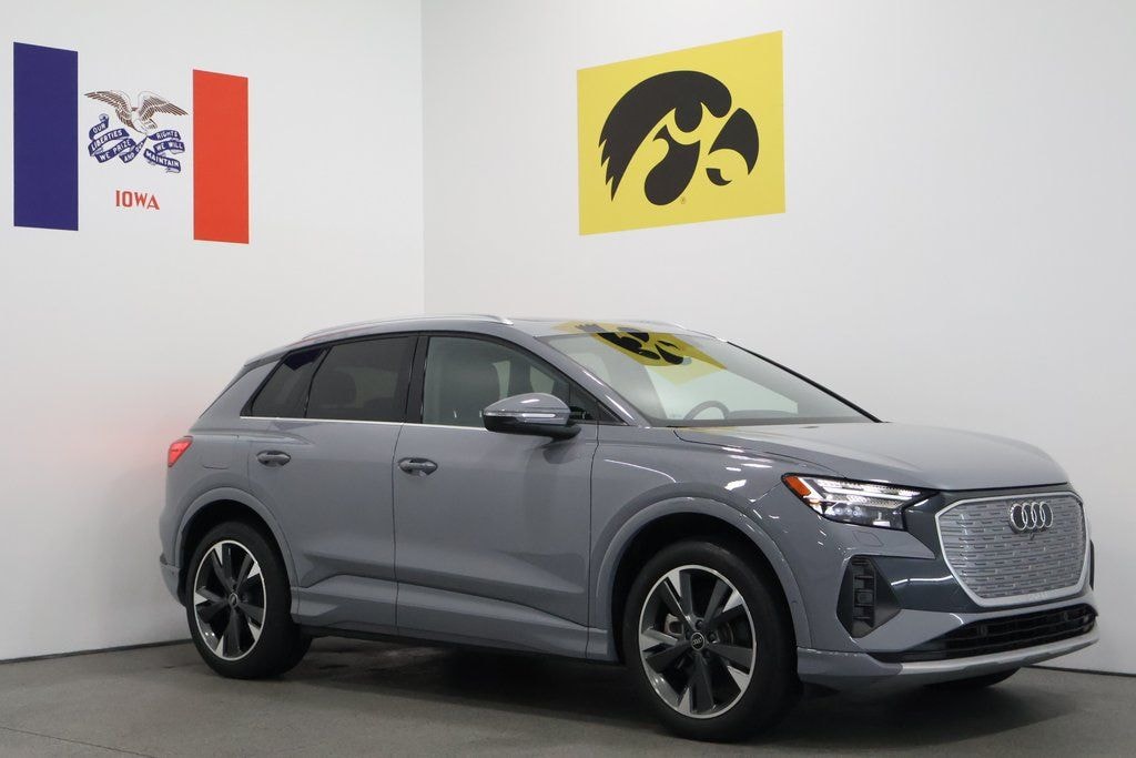 Pebble Gray 2022 Audi Q4 e-tron Prestige quattro Odometer is 10011 miles below market average! Adaptive Cruise Assist w/Lane Guidance, Alarm System w/Motion Sensor, Animation for Headlights & Taillights, Audi Advanced Key, Audi Connect PLUS, Audi MMI Navigation Plus, Audi Virtual Cockpit Plus, Augmented Reality Head-Up Display, Auto-Dimming Interior Mirror w/Compass, Auto-Dimming Power Folding Exterior Mirrors, Convenience Package, Dual Pane Acoustic Glass for Front Side Windows, Headlamp Washer System, Heated Steering Wheel, LED Interior Lighting Plus Package, Matrix-Design LED Headlights, Power Front Passenger Seat, Power Tailgate, Prestige, Projection Light in Exterior Mirrors, SiriusXM w/360L, Sonos Sound System, Technology Package, Traffic Sign Recognition, Wireless Phone Charging Pad.
