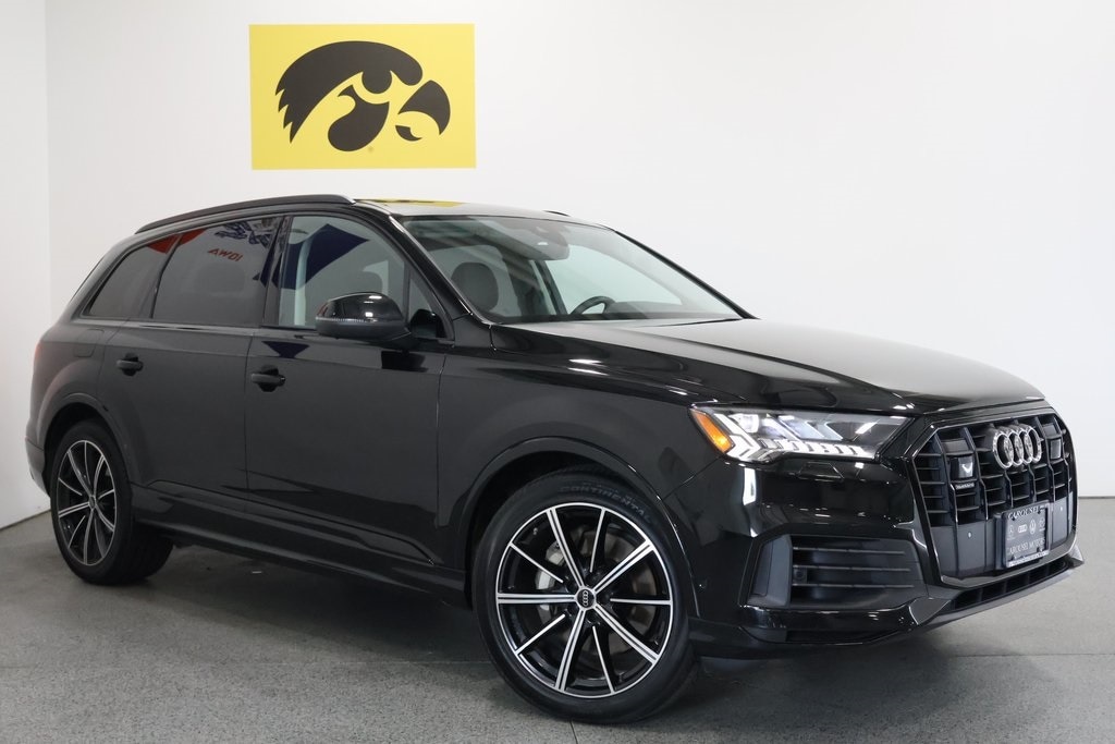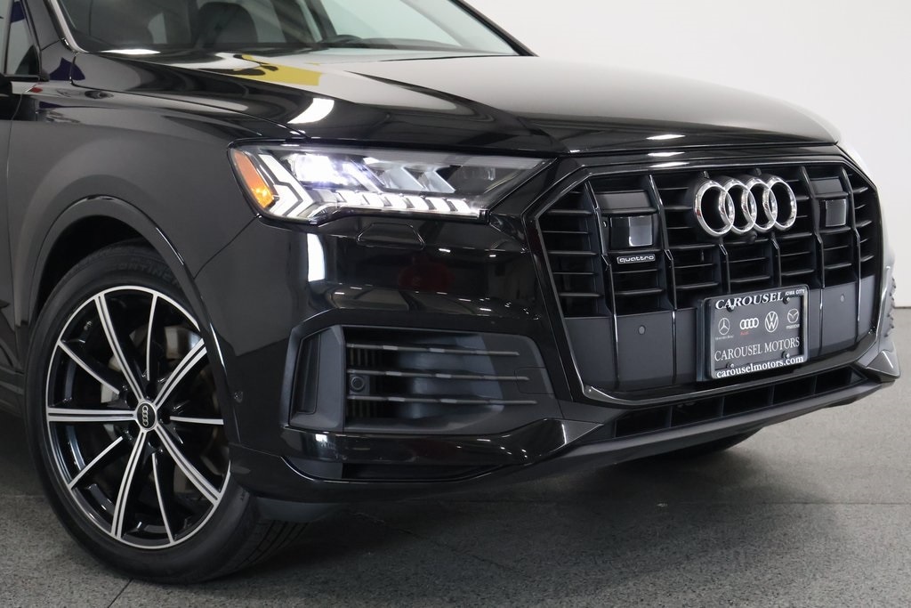 Mythos Black Metallic 2024 Audi Q7 55 Prestige quattro Certified. 4-Zone Automatic Climate Control, Bang & Olufsen Premium Sound System w/3D Sound, Black Door Blades, Black Exterior Trim, Black Grille, Black Optic Package, Black Roof Rails, Black Window Surrounds, Comfort Adaptive Air Suspension, Contour/Ambient LED Interior Lighting Package, Convenience Package, Executive Package, Front Seats w/Ventilation, Head-Up Display, Heated Rear Seats, Heated Steering Wheel, Illuminated Door Sills, Intersection Assist, Power Soft-Closing Doors, Prestige Package, Rear Door/Side Windows & Tailgate Sunshades, Remote Park Assist Plus, Top View Camera System, Traffic Sign Recognition, Wheels: 20" 5-Spoke Turbine-Design, Wheels: 21" 10-Spoke-Star-Design Bi-Color Black, Wireless Phone Charging Pad.